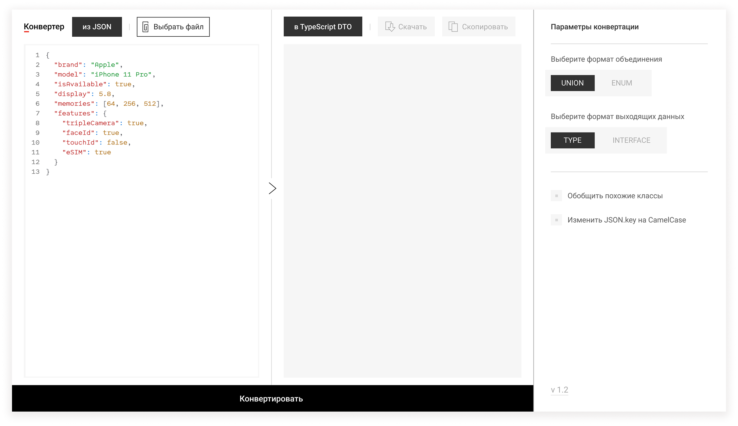 «Конвертер». Веб-сервис для мгновенной конвертации JSON в TypeDTO